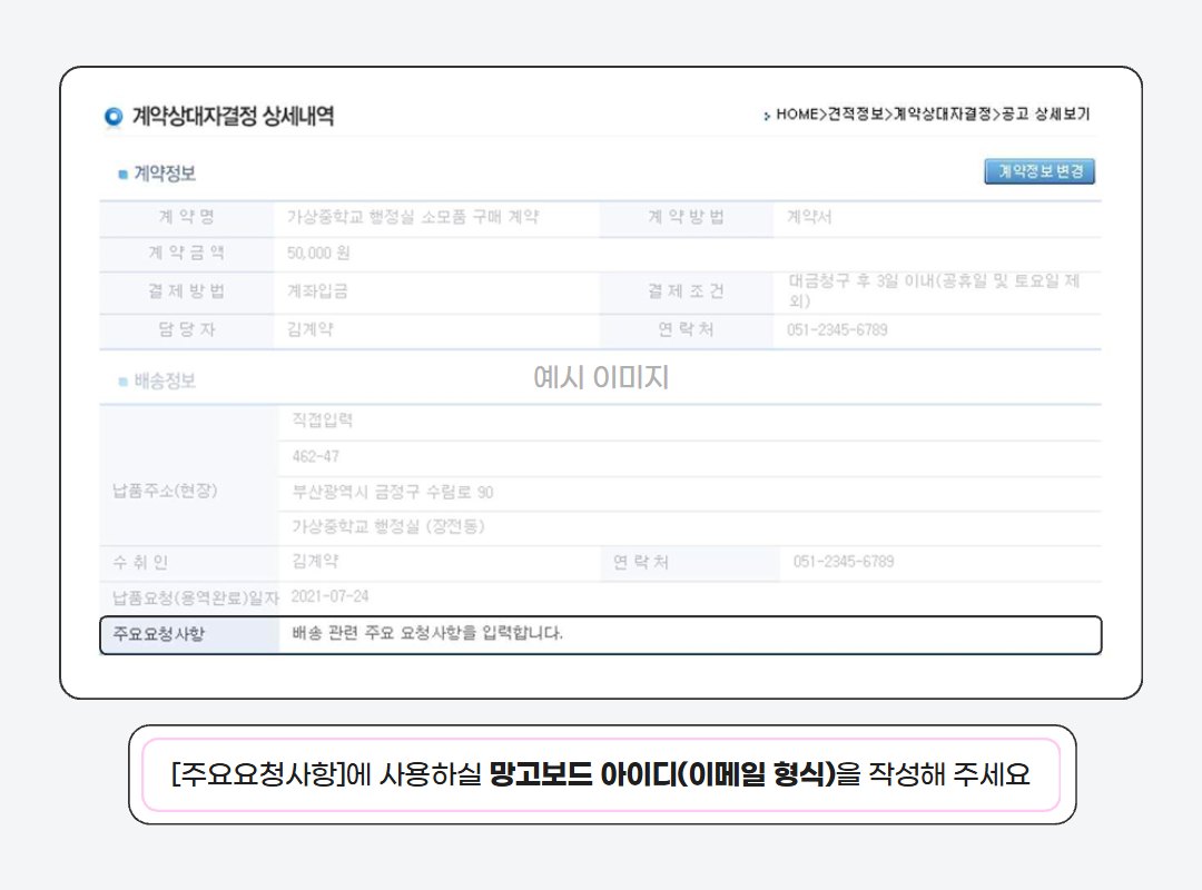 나머지는 학교에서 기존에 학교장터(S2B)를 이용하시던 대로 진행해 주시면 됩니다!