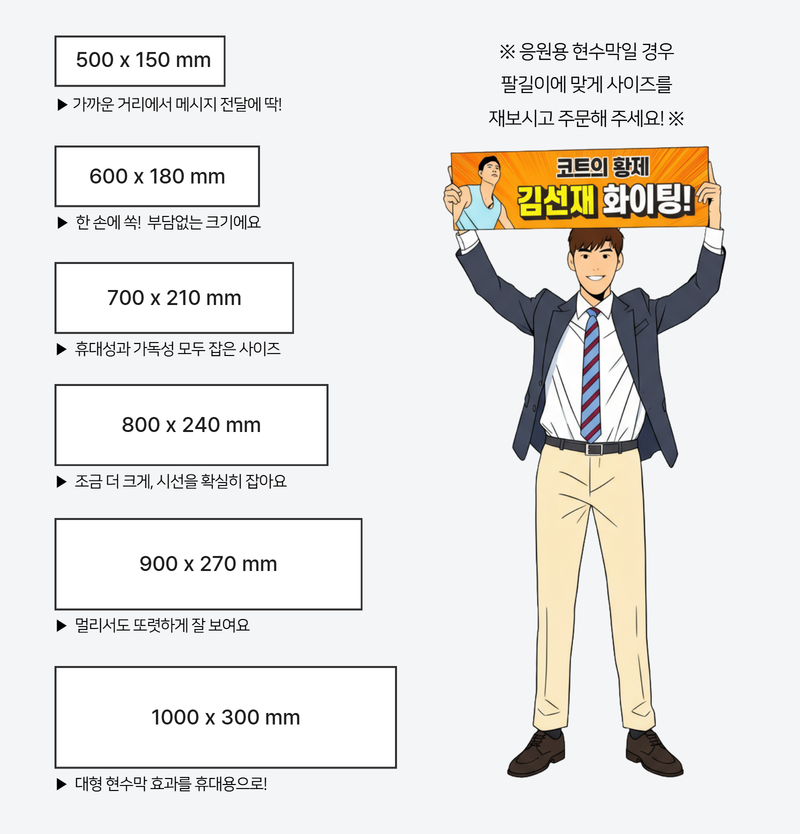 손잡이 현수막 사이즈와 옵션이 궁금하다면
