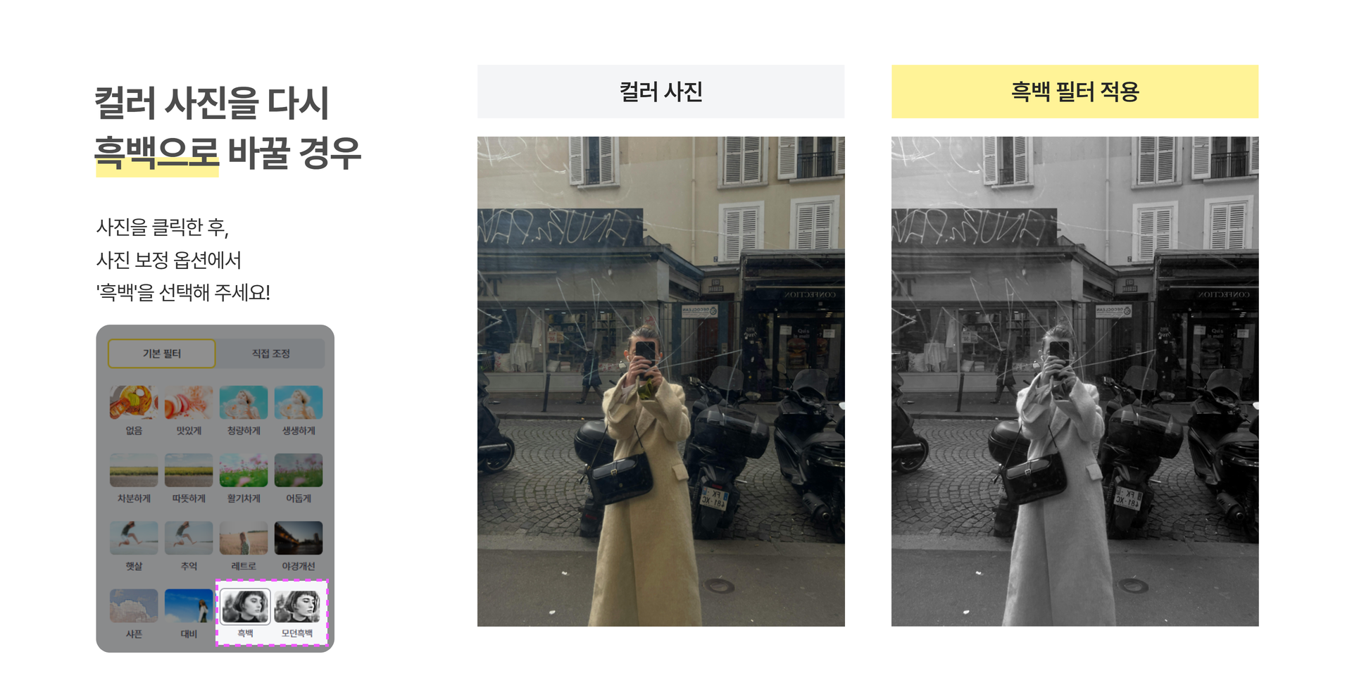 [사진 -> 보정]에서 흑백 필터를 적용해 주세요.