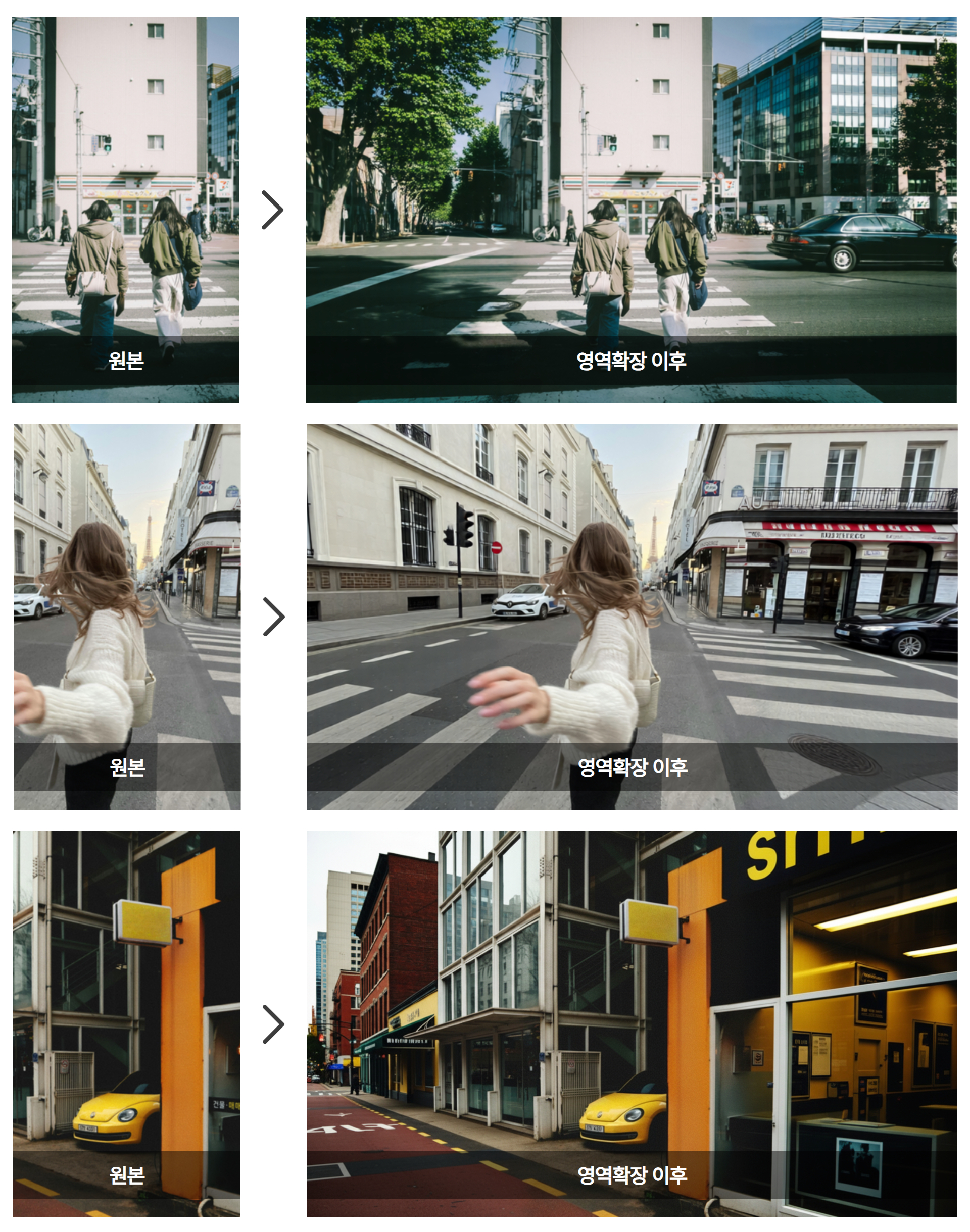 자동차, 하늘, 인물, 횡단보도 등 어떤 이미지든 원래 넓었던 사진처럼