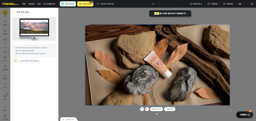 영역을 넓히면서 원본 느낌이 잘 유지되고 있는지 바로 확인할 수 있어요.